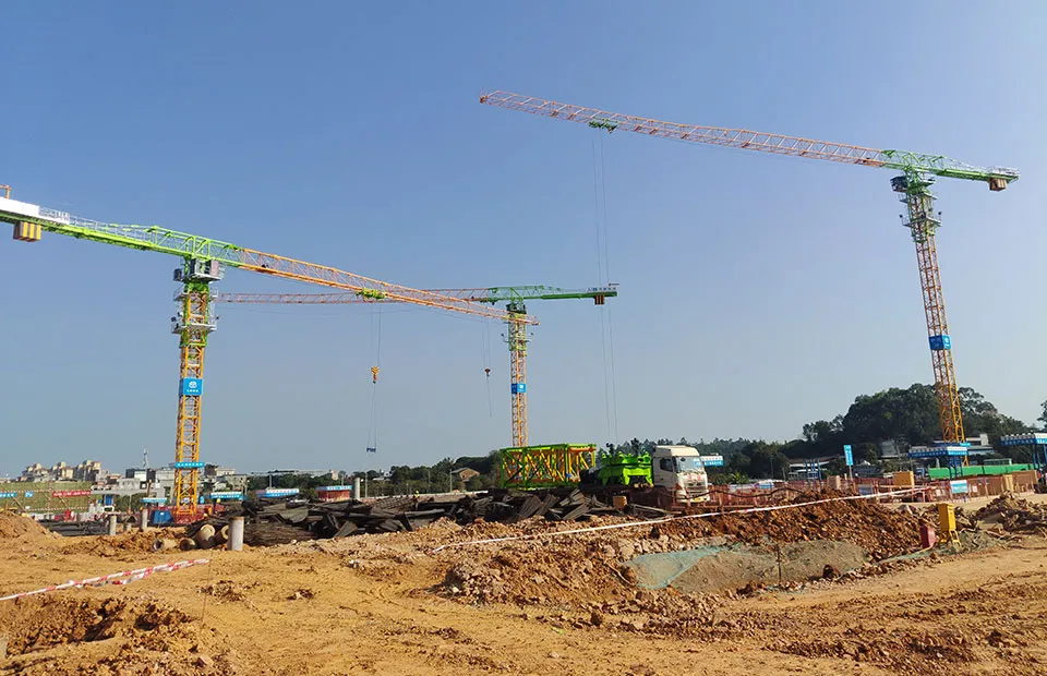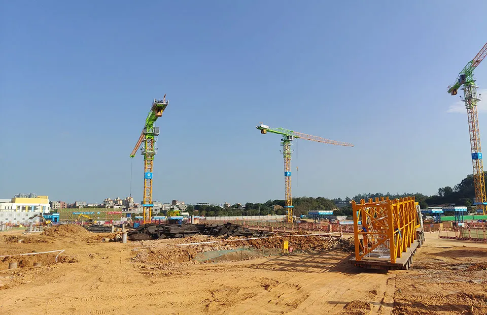 Башенные краны без оголовка AS7521 (3 единицы), башенные краны с балочной стрелой TC7015 и TCT7530 (2 единицы), подъемники SC200/200BD (6 единиц грузоподъемность: 2×2000 кг, номинальная скорость: 0–40 м/мин)